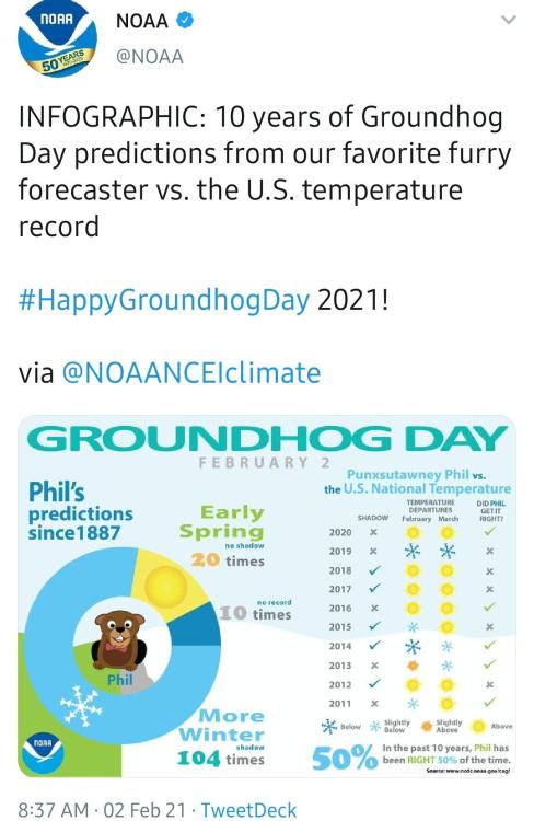 A tweeted infographic about groundhogs day via @ http://www.liveinfographic.com/ MrsMozely, February 02, 2021 at 11:40PM