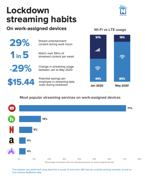 Lockdown Streaming Habits On Work-assigned Devices via @ http://www.liveinfographic.com/ Hansanko, July 23, 2020 at 10:59PM